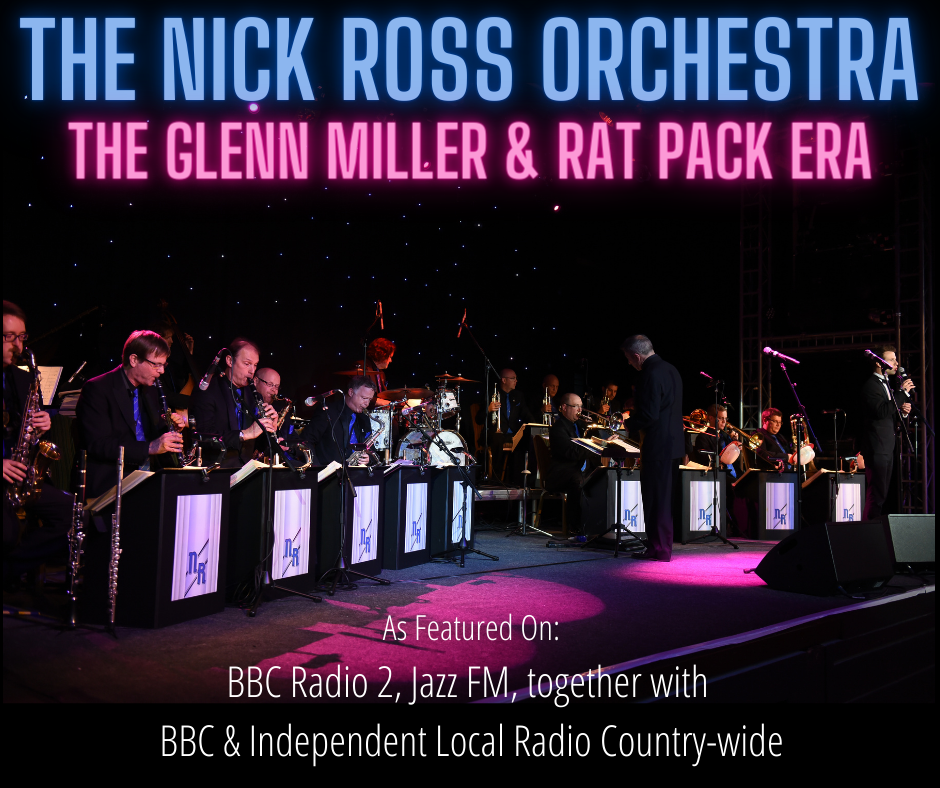 The NRO played its first season back in 1985 led by bandleader, Nick Ross and have been touring audiences across the UK and beyond ever since. This 16-piece big band features some of the finest musicians in the UK along with guest singers which have included Sam Merrick, Georgina Jackson & Matthew Ford. With records released in 2008 (My Favourite Things) and 2011 (Jeepers Creepers) respectively, the NRO have recently released their third album, 'Sounds of the Glenn Miller Era' (2020), recorded at the legendary Abbey Road Studios in London featuring vocalist, Sam Merrick. Recapture the sounds and memories of a bygone era as the Nick Ross Orchestra present an unmissable evening of music and song, the classic Big Band Sound of the Glenn Miller Era. With a line-up of saxophones, trumpets, trombones, a rhythm section and singers, the Nick Ross Orchestra faithfully recreate the Big Band sound of the '40s & '50s. The NRO Library features hits from Glenn Miller, Count Basie, Tommy Dorsey, Ted Heath, Artie Shaw, Woody Herman, Les Brown, Benny Goodman, Ray Noble, and Stan Kenton among others.... and our repertoire would not be complete without reference to the songbook of Frank Sinatra.